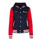 Ladies Hooded Varsity Jacket Navy Red White Front View